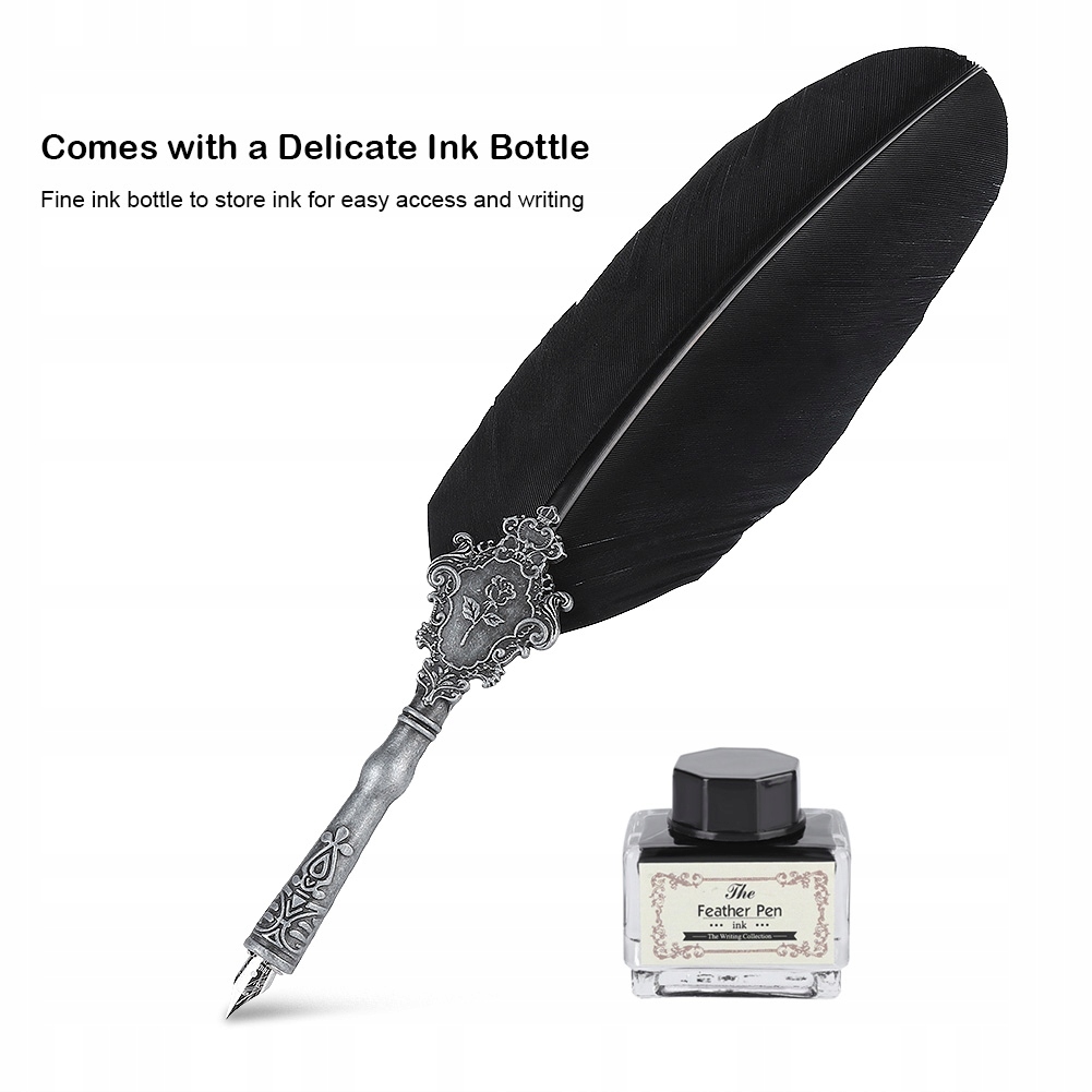 Materiał: pudełko upominkowe o wysokiej twardości + długopis ze stopu + pióro z indyka + stalówka ze stali nierdzewnej