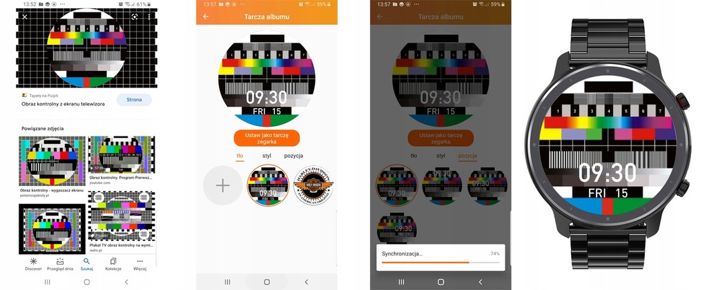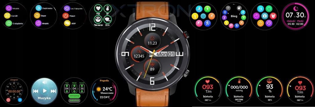 - 4 różne motywy tarczy główne do wyboru w zegarku plus 36 tarcz do wgrania z poziomu aplikacji.