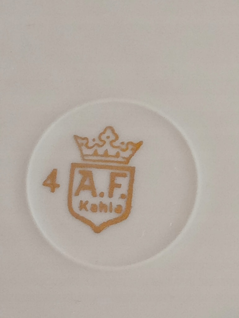 znak „A.F. Kahla” to sygnatura niemieckiej manufaktury porcelany Kahla, znak był używany od 1894 do 1965 roku.