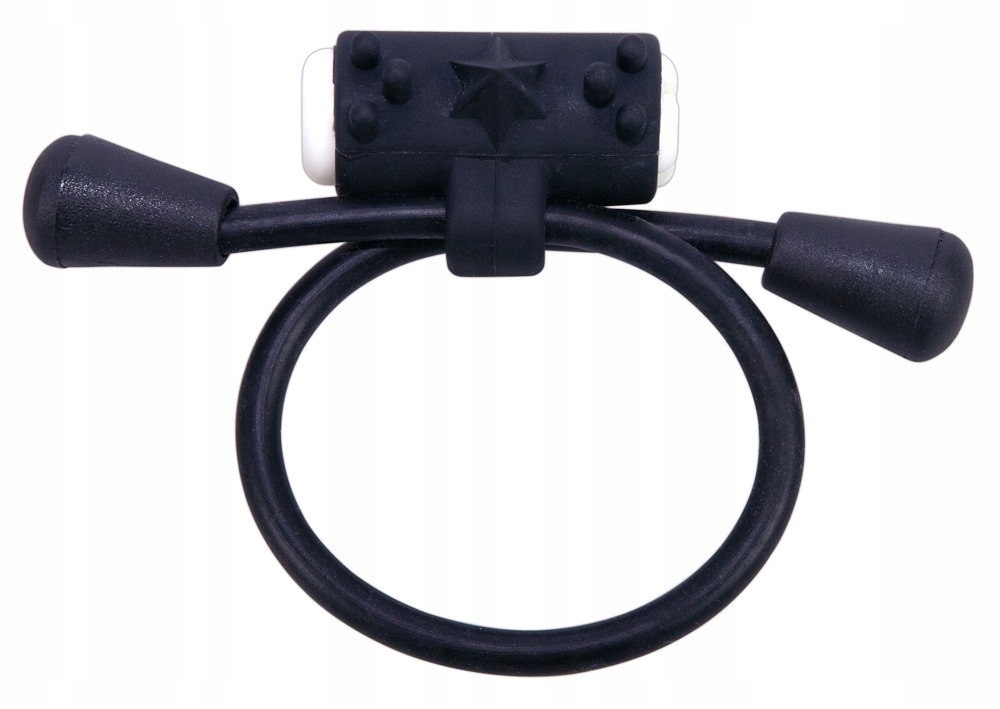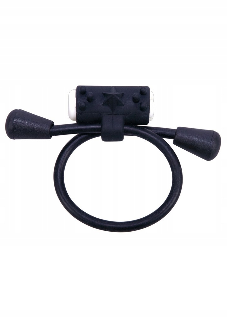 Pętla na penisa z wibratorem Elastyczny pierścień na penisa z wypustkami do stymulacji skrzepu i wkładaną mini-wibracją. Maks. 5 cm. Czarny. Materiał: silikon, bez ftalanów, zgodnie z rozporządzeniem UE REACH. (Baterie należy zamawiać osobno: 2 x LR 41).