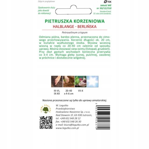 Każde opakowanie zawiera informację odnośnie zasad uprawy wraz z terminem przydatności nasion do siewu.