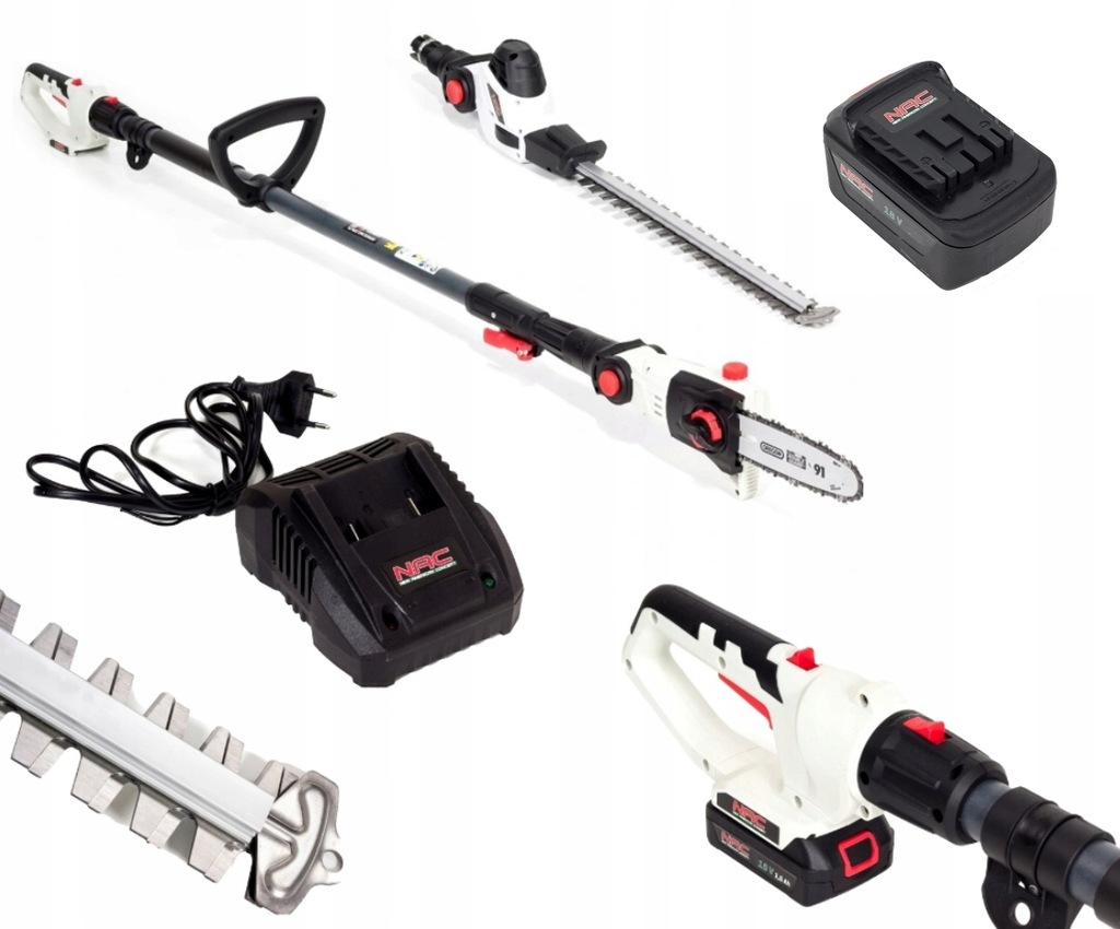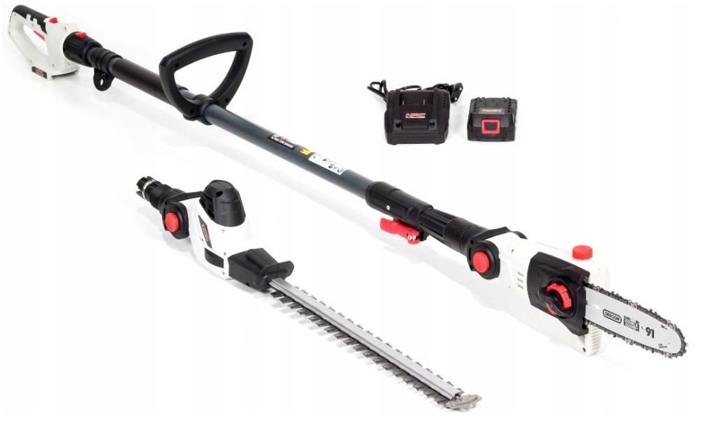 Urządzenie akumulatorowe z teleskopowym wysięgnikiem - nożyce do żywopłotu + okrzesywarka do gałęzi
