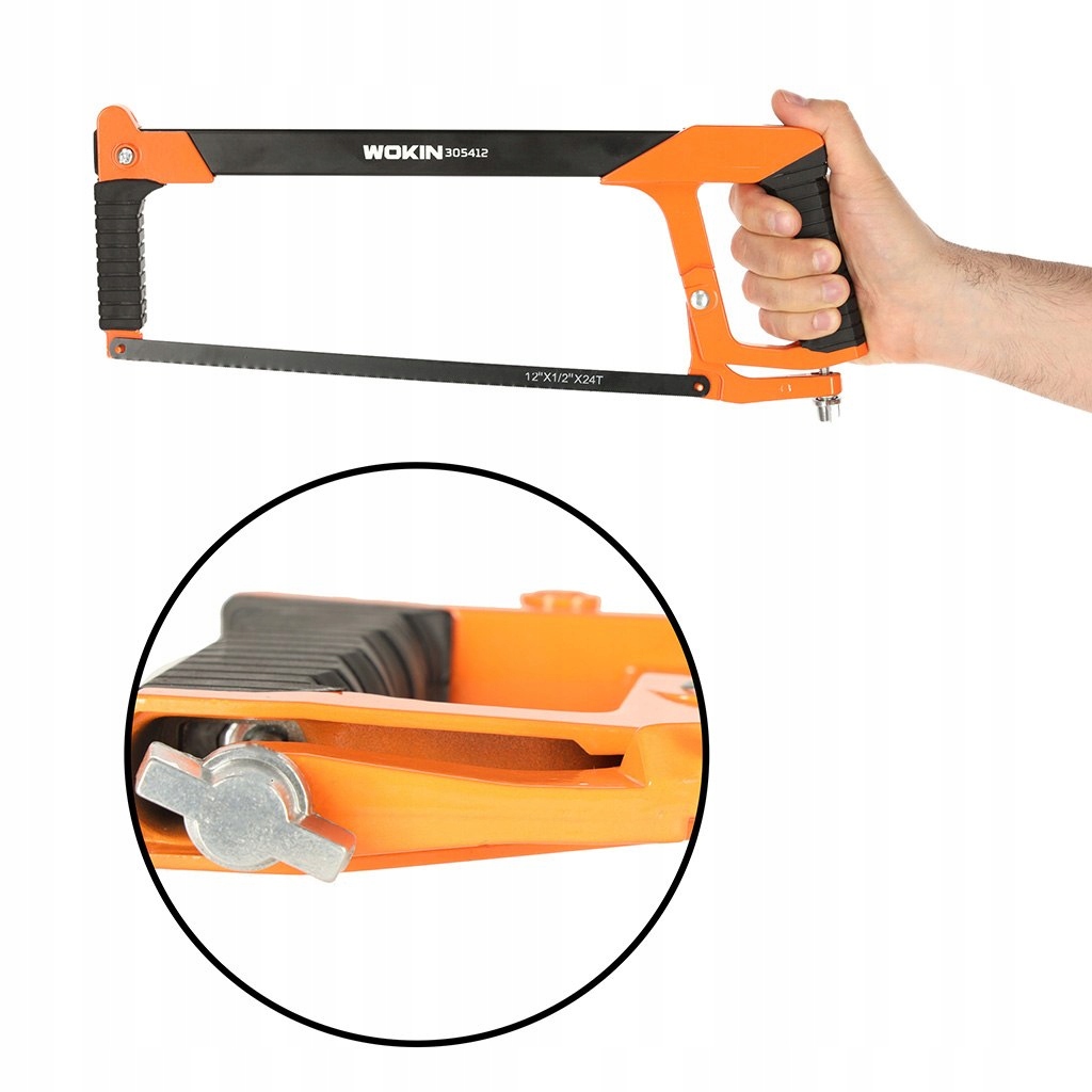 Piła ręczna brzeszczot do metalu kabłąkowa aluminiowy uchwyt regulacja ostrza 300 mm WOKIN