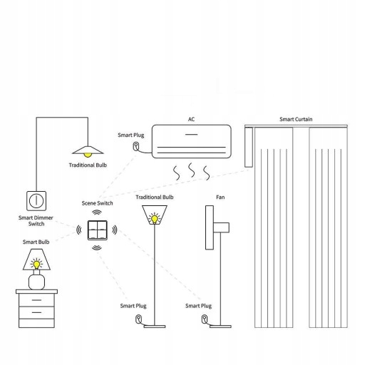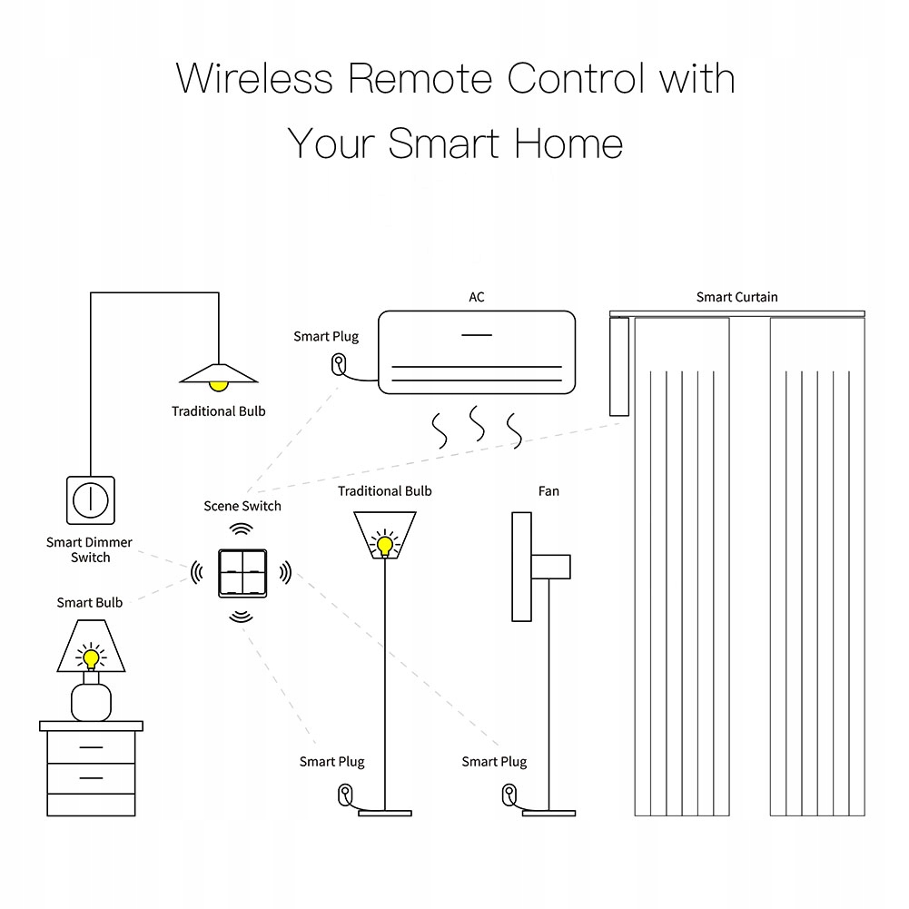 - Wolny do podłączenia przełącznik bezprzewodowy ZigBee, który musi być używany z bramą Zigbee rozwiązania Tuya.