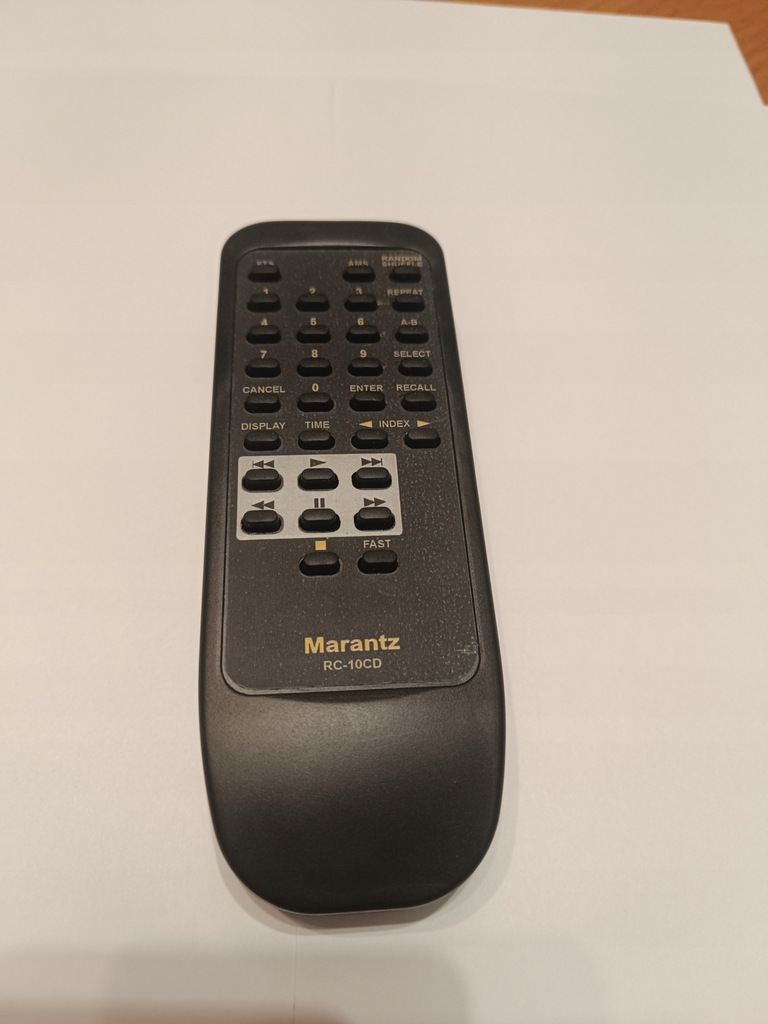 Dzień dobry. Do zaoferowania posiadam zamiennik pilota do odtwarzaczy CD produkcji Marantz. Zgodnie z tym co w sieci podobno to pilot do modelu CD-10, jednak powinien być kompatybilny z większością najpopularniejszych modeli (przynajmniej podstawowe funkcje). U mnie sprawdzony z modelem 63SE i 42MKII. Pod spodem serie które powinien obsługiwać. Jednak nie daję gwarancji na pełną zgodność.