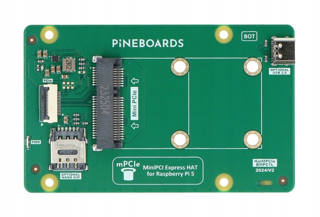 Pineboards Hat mPCIe - adapter mini PCIe+USB 2.0+nano SIM do Raspberry Pi 5