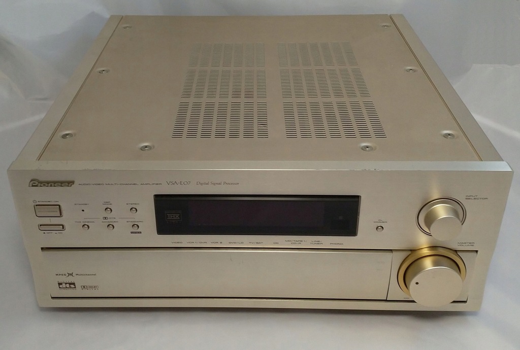 Doskonały wzmacniacz kina domowego oraz stereo. Konstrukcja bardzo ciężka, przemyślana w każdym detalu, a komponenty użyte do jego budowy na poziomie Hi-End jak przystało na flagowy model Pioneera. Obudowa cała pokryta miedzią, a pozłacane wejścia czynią z tej maszyny prawdziwe dzieło sztuki japońskich konstruktorów. VSA E07 kiedy pokazał się na rynku był marzeniem niejednego kinomana i audiofila. Cena ok. 15000 zł w momencie premiery powstrzymała niejednego przed jego zakupem. Wzmacniacz był zdobywcą nagrody fachowców i krytyków sprzętu Hi-Fi EISA. Do chwili obecnej jest wzorowym wzmacniaczem kina domowego i Stereo. Bogactwo możliwości ustawień dźwięku zadowoli niejednego fana Pioneera. Kolor szampański dodaje mu prestiżu i klasy.