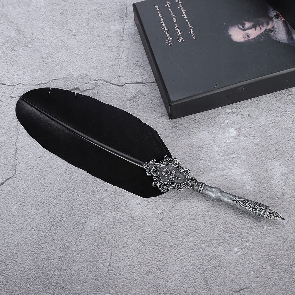 Retro pióro ze stopu pióra ze stalówkami do pióra zestaw upominkowy zestaw piór z butelką z atramentem w kolorze czarnym