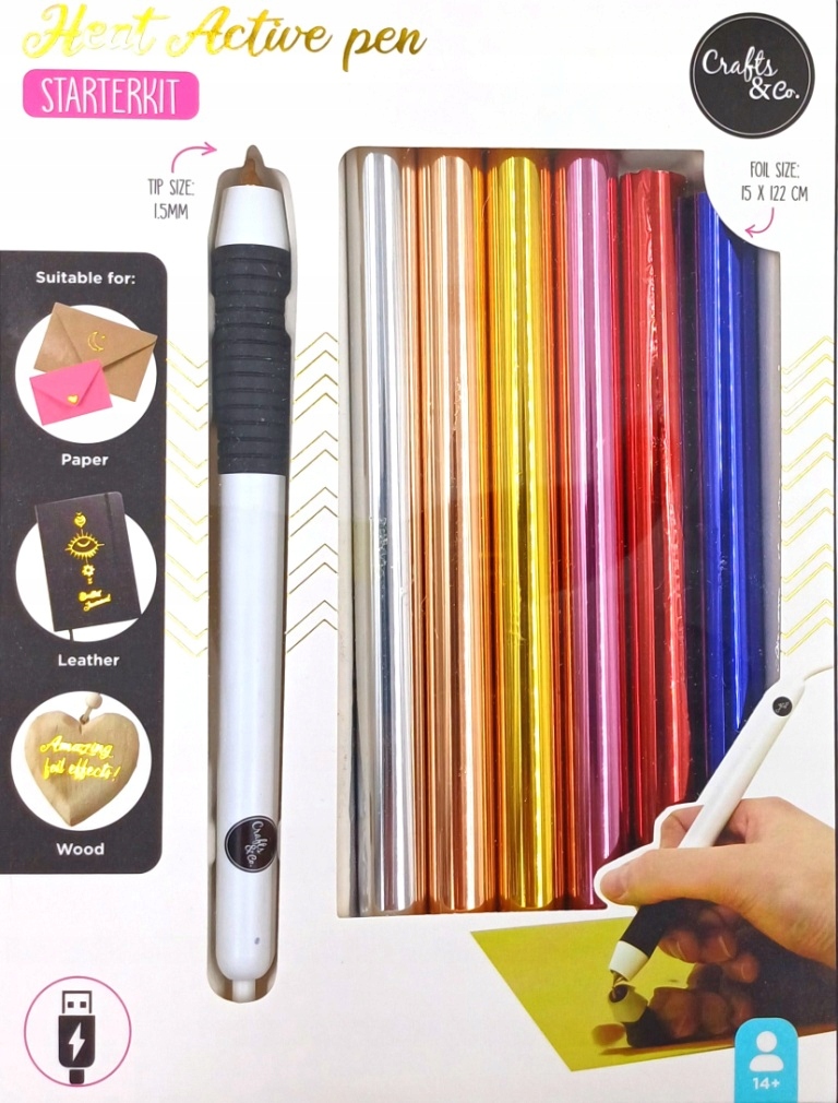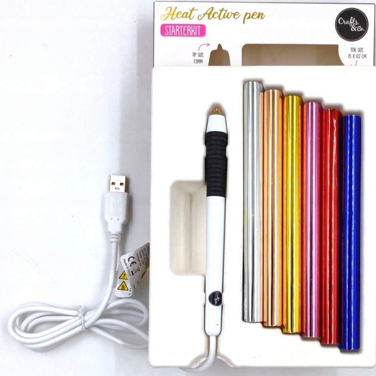 Pióro USB do wykonywania zdobień termicznych + 6 kolorów folii w zestawie