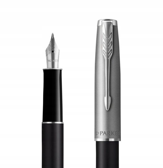 Parker Sonnet pióro wieczne, metal i czarny lakier z wykończeniem z palladu, stalówka ze stali szlachetnej. Nasadka ze stali szlachetnej oraz lakierowany na czarno korpus z akcentami pokrytymi palladem i charakterystyczny klips w kształcie strzałki PARKER Wyposażone w stalówkę ze stali szlachetnej, która gwarantuje niezawodność i sprzyja ekspresji własnego stylu. Składany ręcznie i sprawdzany pod kątem niezawodności działania, stanowi wyraz pasji marki do rękodzieła