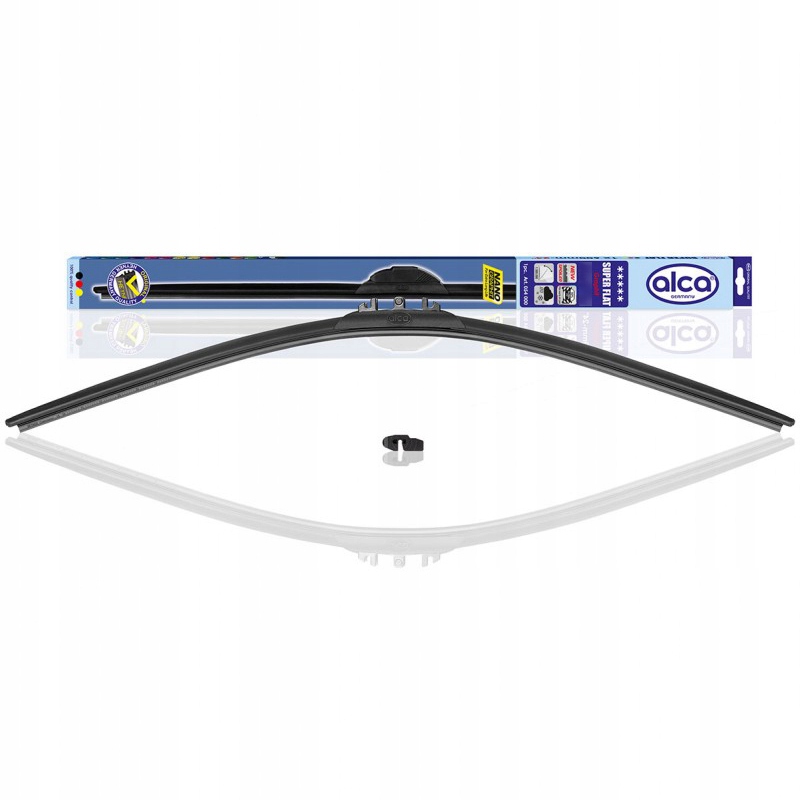 Wysokiej jakości samochodowa wycieraczka o płaskim profilu (bezprzegubowa / bezszkieletowa) z serii SUPER FLAT od znanej i renomowanej niemieckiej firmy ALCA:
