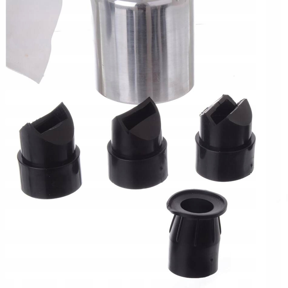 Profesjonalny pistolet do piaskowania z systemem odzyskiwania ścierniwa. Po przystawieniu odpowiedniej gumowej dyszy do powierzchni piaskowanej ścierniwo zbiera się w worku mocowanym na końcu pistoletu, dzięki czemu piasek użyty do pracy może być wykorzystywany wielokrotnie. Dzięki wymiennym dyszom gumowym można dostosować strumień wyrzucanego ścierniwa do kształtu powierzchni piaskowanej.