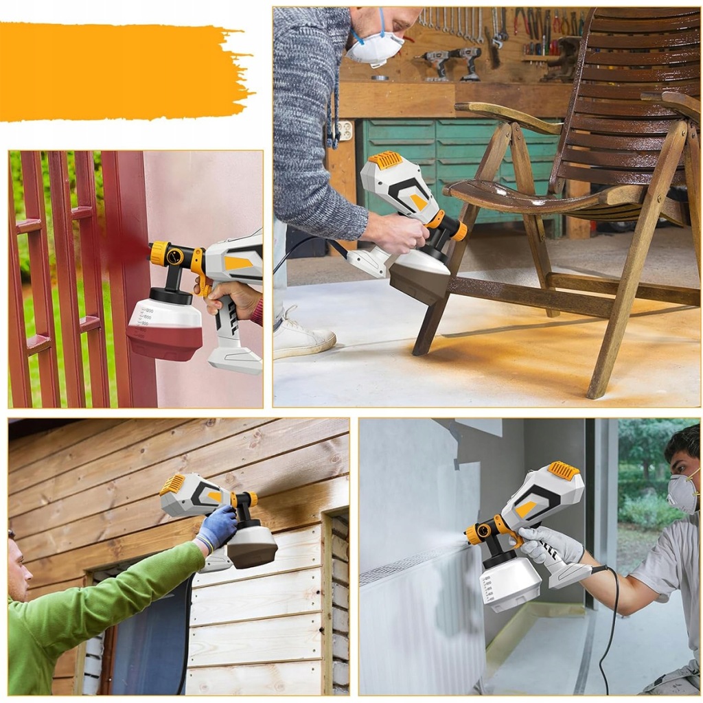 - Ten elektryczny opryskiwacz świetnie nadaje się do malowania mebli, małych powierzchni ścian, małych powierzchni sufitów, listew zewnętrznych, ogrodzeń, szafek, paneli i innych.