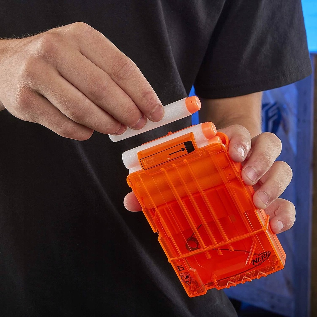 Nerf Stryfe to półautomatyczna wyrzutnia strzałek z serii Elite zasilana na 4 baterie typu AA. Świetna propozycja na rozpoczęcie przygody z Nerfem oraz idealna do zaawansowanych modyfikacji. To wersja klasycznego blastera Stryfe w wersji Nerf Modulus. Dodatkowo wyposażona jest w opuszczany uchwyt i przedłużenie lufy, aby dostosować ją do dowolnej gry Nerf. Wyrzutnia posiada wyjmowany magazynek typu Clip System na 6 strzałek oraz jest półautomatyczna co oznacza, że nie trzeba jej przeładowywać aby wystrzelić. Stryfe posiada dwa spusty jeden uzbraja wyrzutnię, a drugim wystrzeliwujemy strzałkę. Wyrzutnia wystrzeliwuje strzałki na ponad 20 metrów i możemy z niej strzelać tak szybko jak potrafimy naciskać na spust. Stryfe daje niesamowite możliwości modyfikacji. Do wyrzutni możemy dołączyć wszystkie dodatki z serii Modulus jak również kolbę ze Stockada czy lufę z Retaliatora