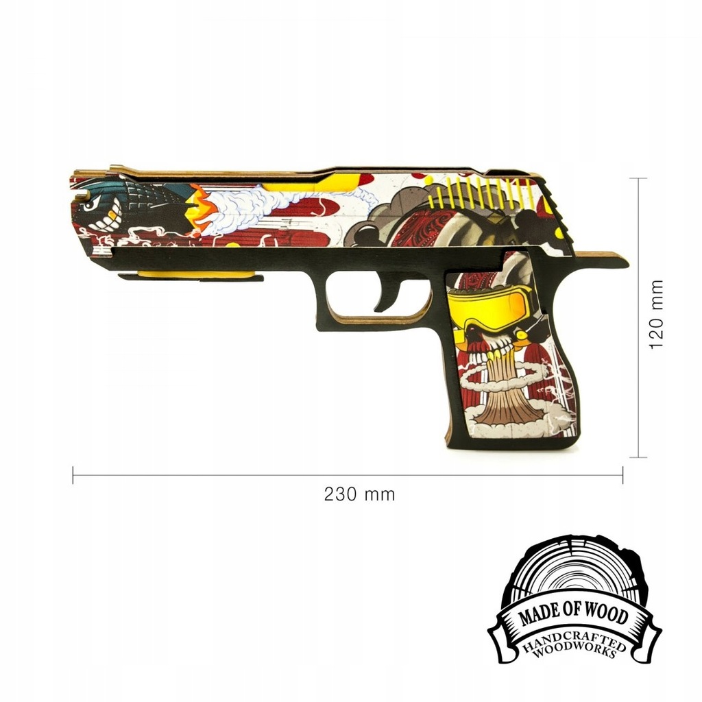 Przed tobą znajduje się kopia pistoletu z Counter-Strike, wykonana w całości z drewna, a następnie dokładnie i z wysoką jakością pomalowana. Ten pistolet będzie wspaniałym prezentem dla twojego dziecka lub przyjaciela.