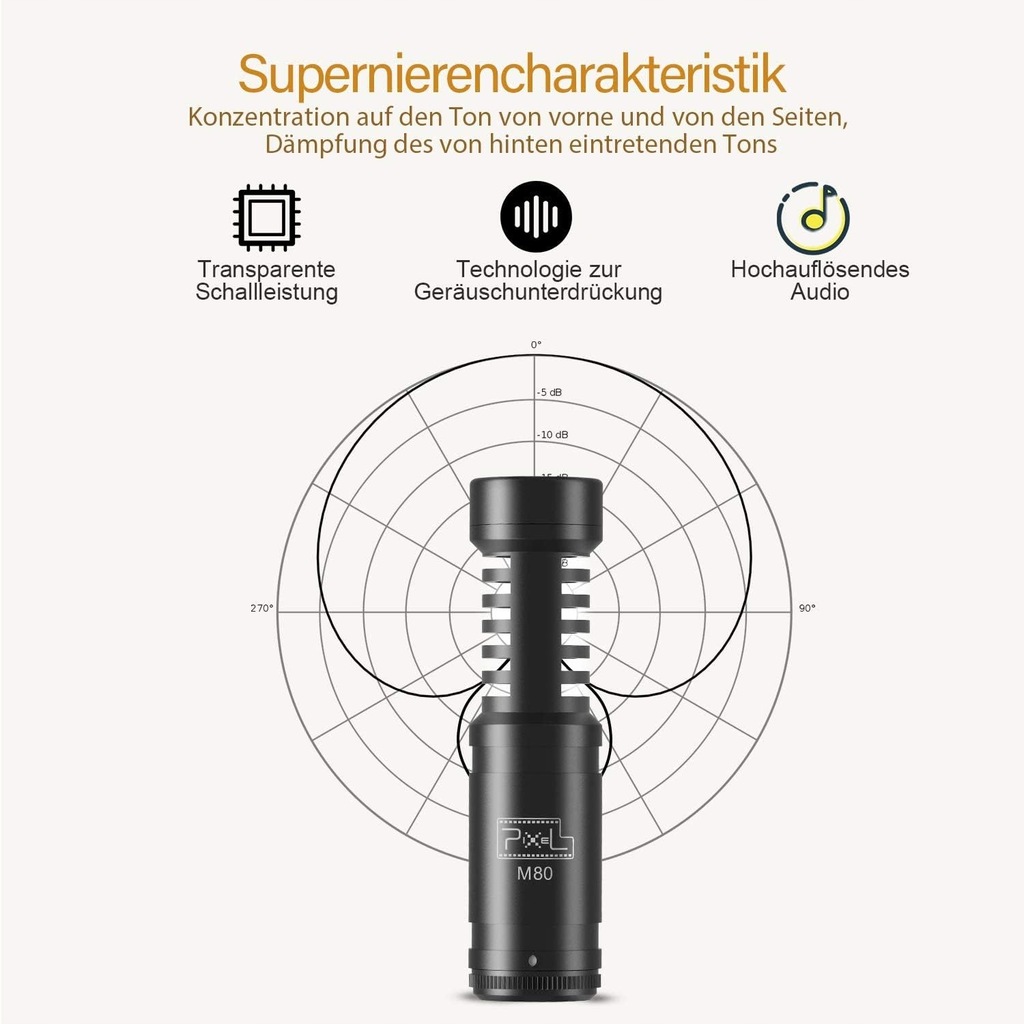 ️ Dźwięk Najwyższej Jakości: Mikrofon wideo Pixel M80 to esencja doskonałego dźwięku. Dzięki charakterystyce super nerek i wyjątkowej redukcji hałasu, Twój dźwięk stanie się krystalicznie czysty. Niechciane echo odchodzi w zapomnienie, a każdy dźwięk pozostaje stabilny i wyraźny.
