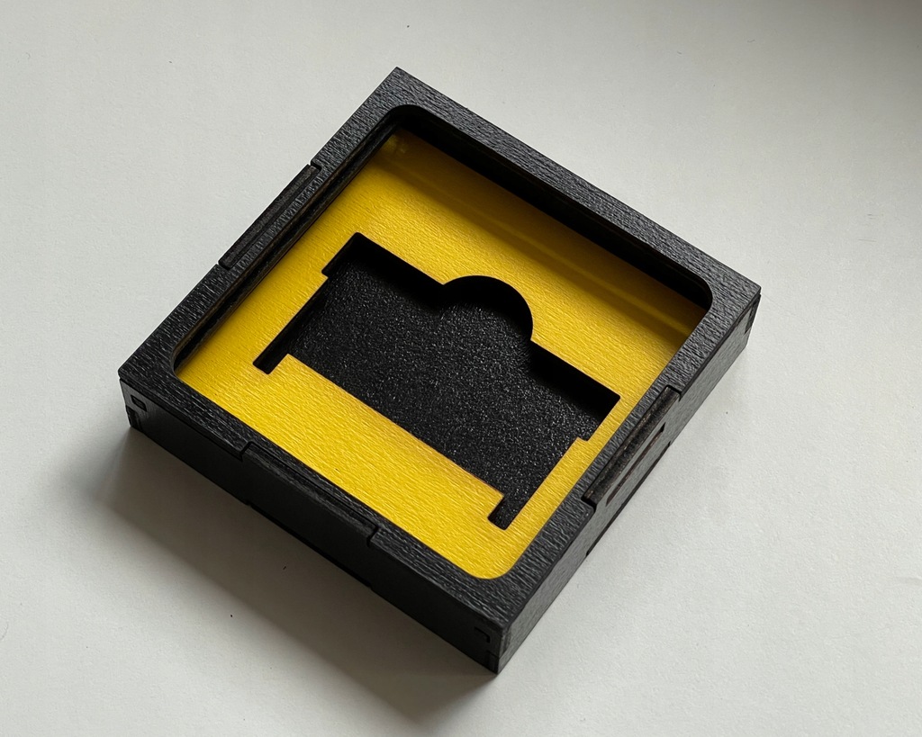 Dopełnieniem całości jest wykonana z przeźroczystej plexy szybka, którą możemy wsuwać oraz wysuwać, uzyskując tym samym łatwy dostęp do zawartości gablotki/pudełka. Szybka przesuwa się po specjalnie zaprojektowanych prowadnicach, które jednocześnie zabezpieczają przed jej przypadkowym wysunięciem.