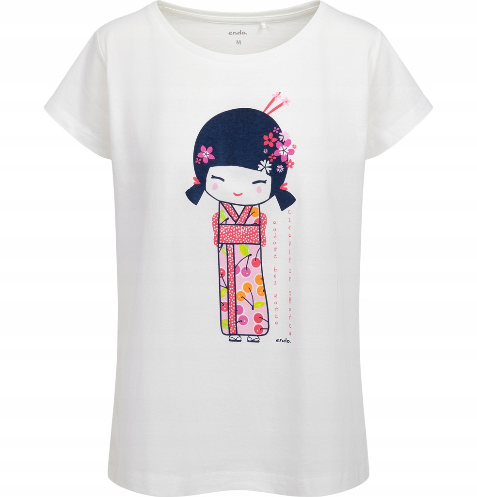 Piżama damska 100% bawełna piżama biało-różowa XL z gejszą Endo