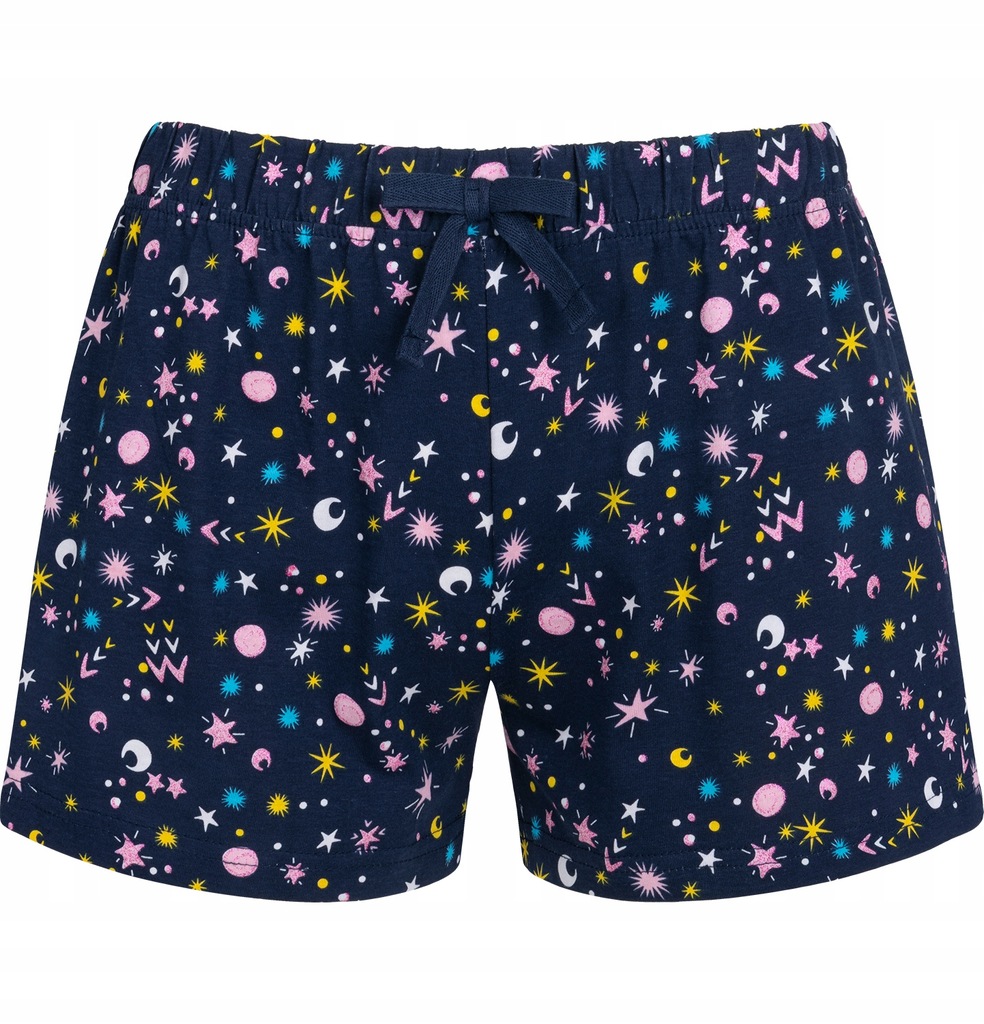 Miękka tkanina sprawia, że piżama damska jest wygodna, przewiewna i idealna na ciepłe wieczory. Luźny krój, szorty z delikatnym wiązaniem w pasie, a także subtelny nadruk, to połączenie, które zapewnia maksymalny komfort. To świetny wybór na wieczory pełne relaksu, zabawy i odpoczynku.
