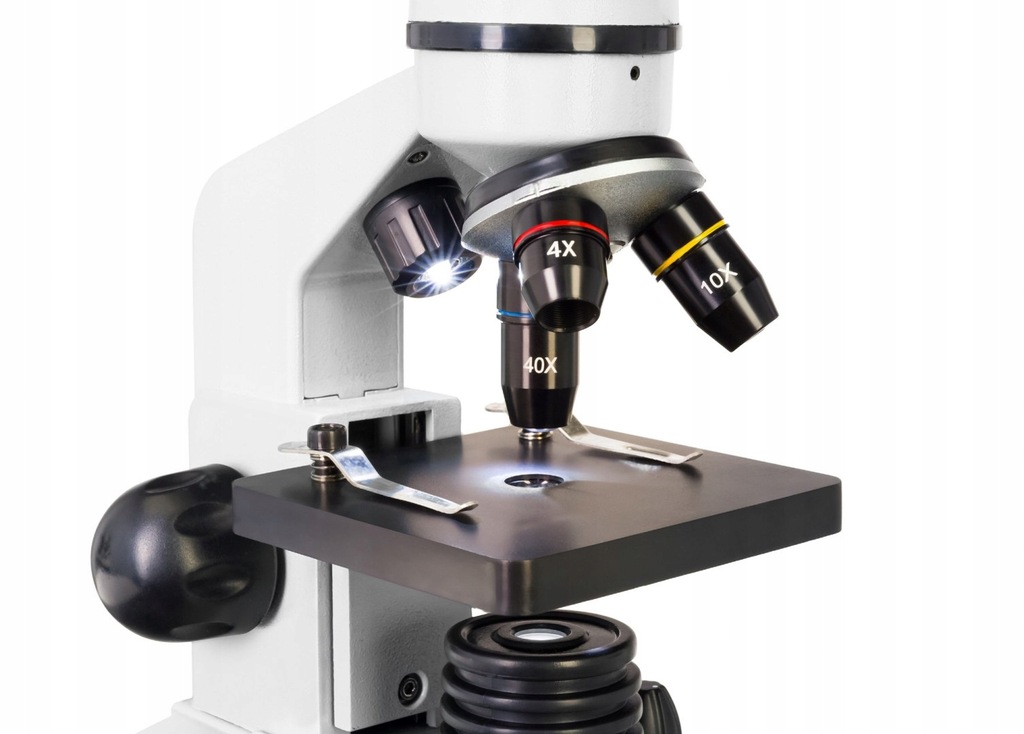 Soczewki wykonane są ze specjalnego szkła optycznego o wysokiej przezroczystości. Wszystkie powierzchnie optyczne zostały pokryte wielowarstwową powłoką antyodblaskową, dzięki czemu mikroskop dostarcza ostry, kontrastowy i niezwykle szczegółowy obraz obserwowanej próbki Trzy obiektywy umożliwiają uzyskanie szerokiego zakresu powiększenia od 40x do 400x. Zmiana powiększenia jest łatwa i odbywa się za pomocą obrotowej głowicy.