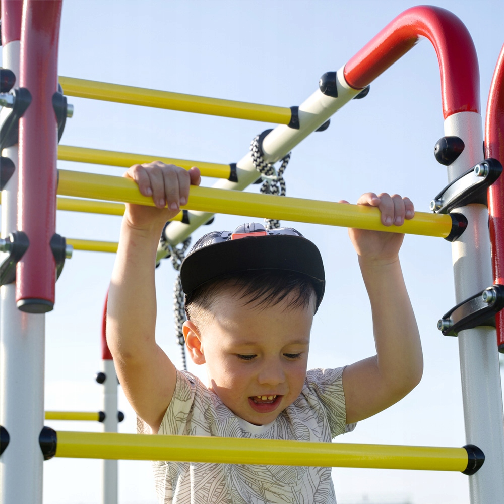 Place zabaw do ogrodu z oferty MAŁPISZON cechują się wyjątkowo stabilną i długotrwałą konstrukcją, która posłuży dzieciom i dorosłym przez wiele lat. Konstrukcja jest przemyślana, łatwa w montażu, a jednocześnie ma estetyczny wygląd i zachęcające do zabawy kolory. Pokrycie z farby proszkowej sprawia, że plac zabaw jest odporny na działanie warunków atmosferycznych i zabezpieczony przed rdzewieniem. Metalowe place zabaw dla dzieci nie wymagają corocznej impregnacji zabezpieczającej je przed gniciem. Akcesoria gimnastyczne montowane na placu zabaw dla dzieci są wykonane z materiałów o wzmocnionej odporności na warunki atmosferyczne.