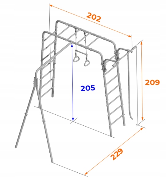 - wyposażenie: drabina metalowa – 2 szt, drążek do ćwiczeń z możliwością regulacji wysokości, drabinka pozioma, huśtawka siedzisko, lina gimnastyczna, kółka gimnastyczne z trapezem