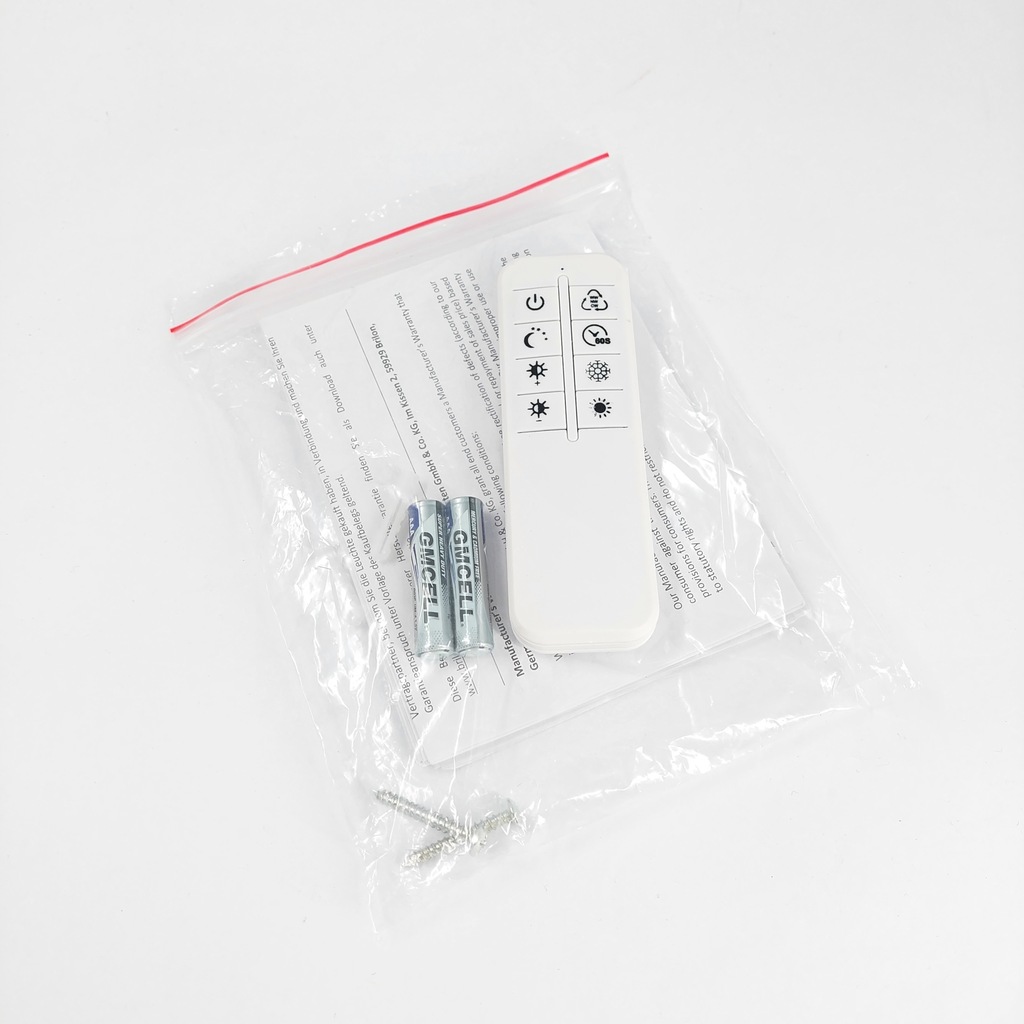 - Za pomocą funkcji przyciemniania i funkcji zmiany kolorów (2700 K do 5000 K; biała do neutralnego biała) można optymalnie dostosować warunki oświetlenia do swoich potrzeb i indywidualnie sterować – ponadto lampa jest wyposażona w funkcję oświetlenia nocnego i timer (lampa sufitowa włącza się po ok. 1 minuta automatycznie wyłączona) – wszystkie funkcje można wygodnie sterować z sofy za pomocą dołączonego pilota