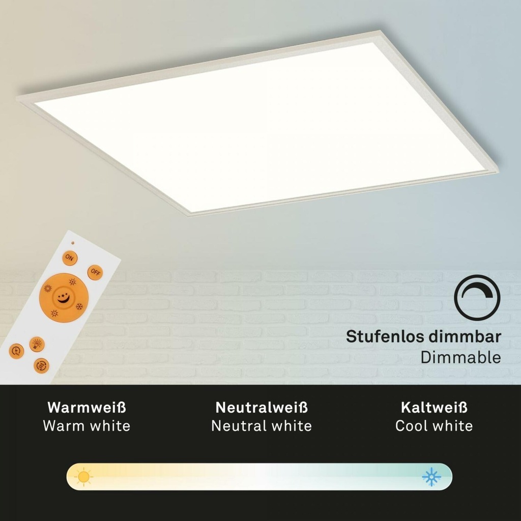 Briloner Leuchten – panel sufitowy LED, możliwość ściemniania, sterowanie temperaturą barwową, pilot zdalnego sterowania, 36 W, 3800 lm, lampa LED, lampa do salony, lampa sufitowa, biała, 59,5 cm