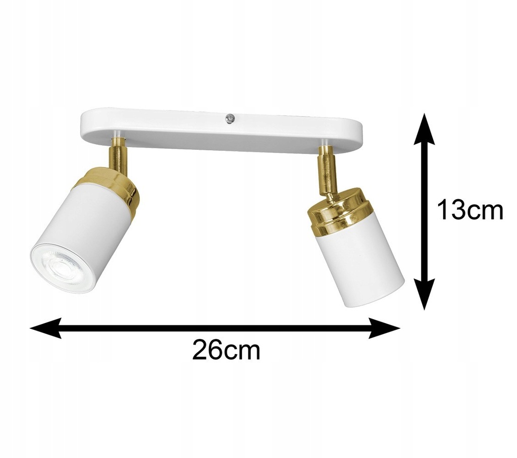 Wykonany z metalu, podwójny punkt świetlny w kolorze biało złotym spotlight z elementami złoconymi
