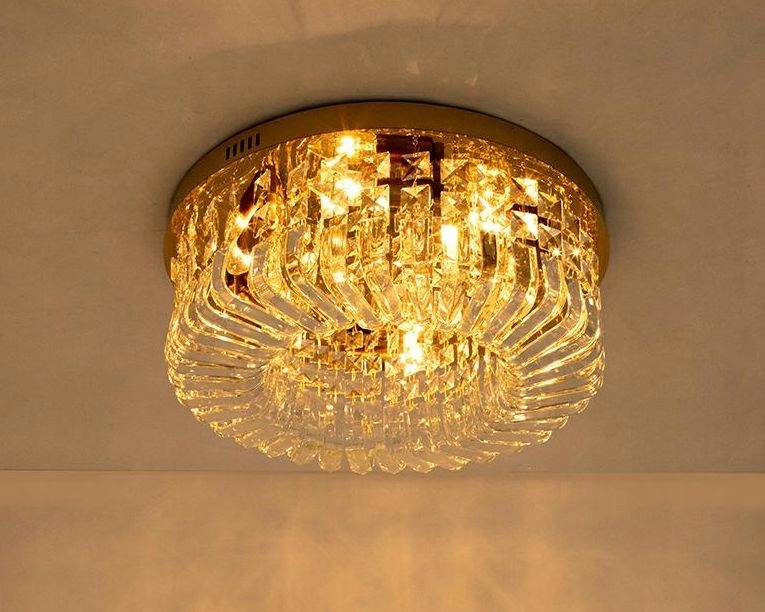 Metalowa konstrukcja o złotym odcieniu w połączeniu z kryształowymi elementami tworzy olśniewający efekt, który wspaniale rozświetla i dodaje elegancji każdemu pomieszczeniu.