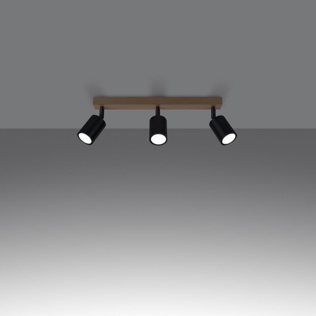 Źródło światła: GU10, 3x max 10W LED, ~230V, 50Hz, IP20, klasa ochronności I Źródło światła nie jest w komplecie. Wymiary: 61/45/17,5 cm Materiał: stal, drewno Kolor: czarny