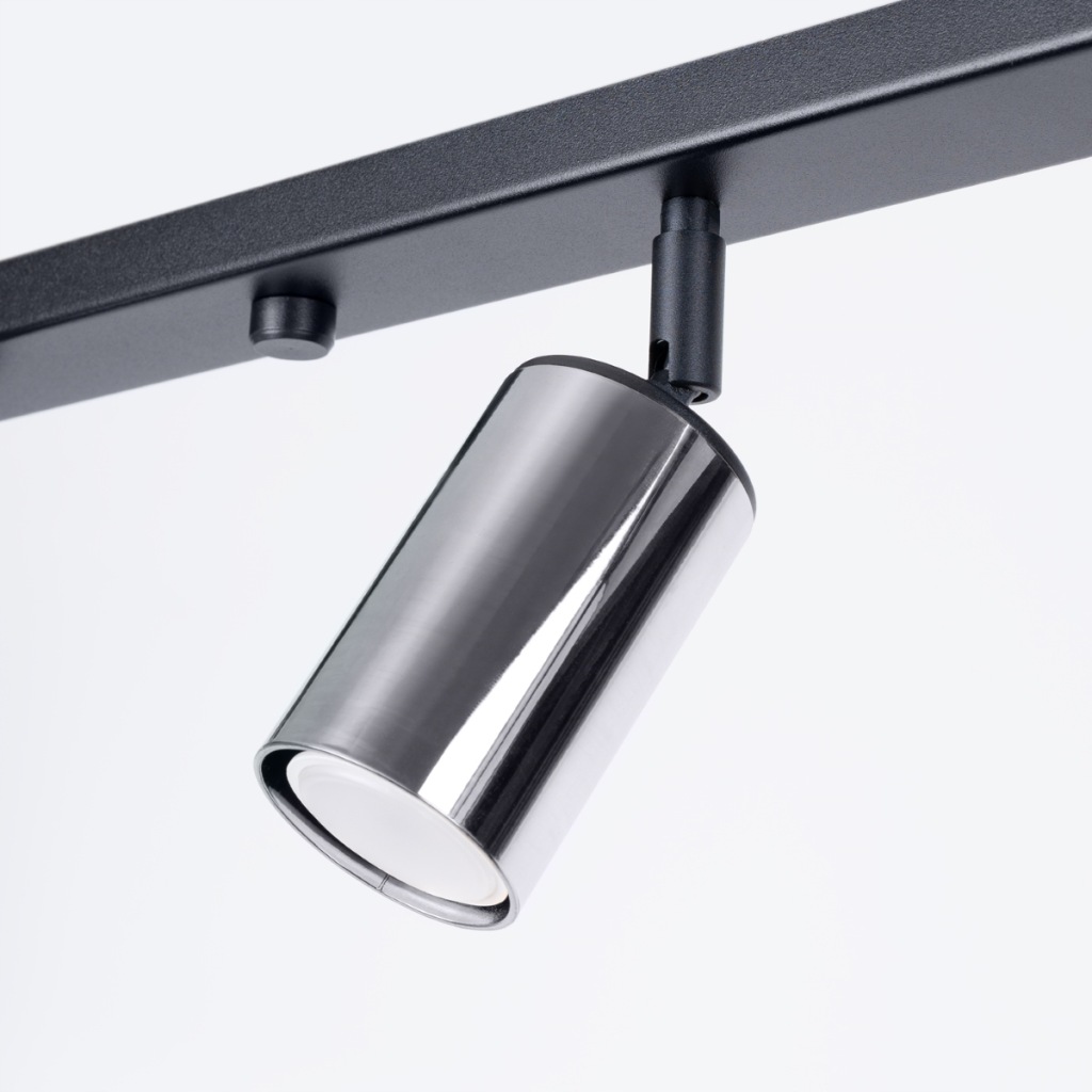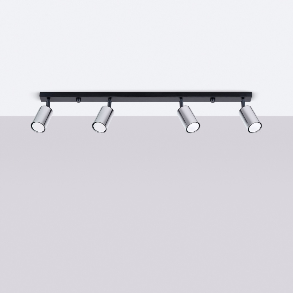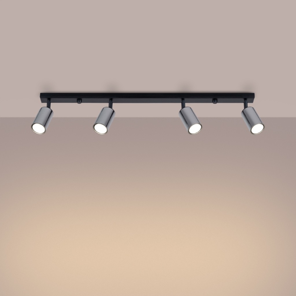Źródło światła: GU10, 4x max 10W LED, ~230V, 50Hz, IP20, klasa ochronności I Źródło światła nie jest w komplecie. Wymiary: 82/6/18,5 cm Materiał: stal Kolor: czarny, chrom