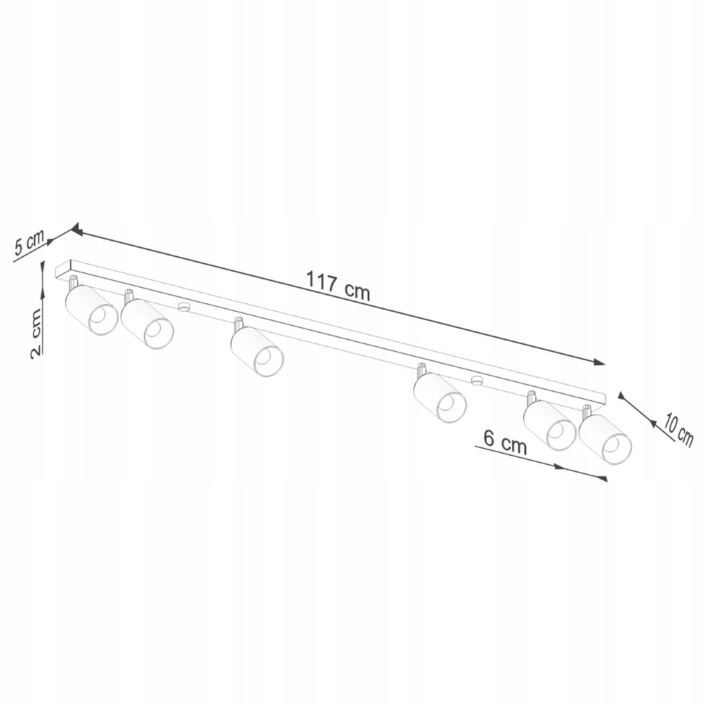 Źródło światła: GU10, 6x max 10W LED, ~230V, 50Hz, IP20, klasa ochronności I Źródło światła nie jest w komplecie. Wymiary: 118/6/18,5 cm Materiał: stal Kolor: czarny, miedź