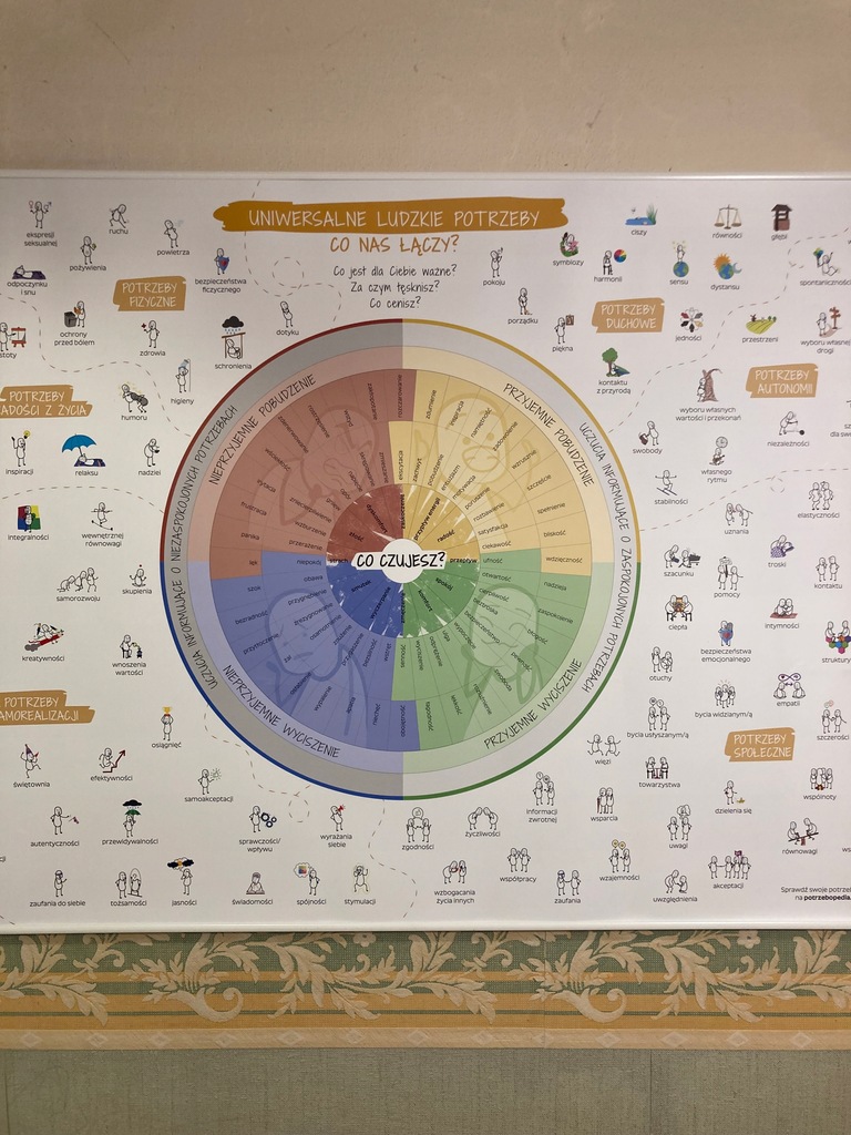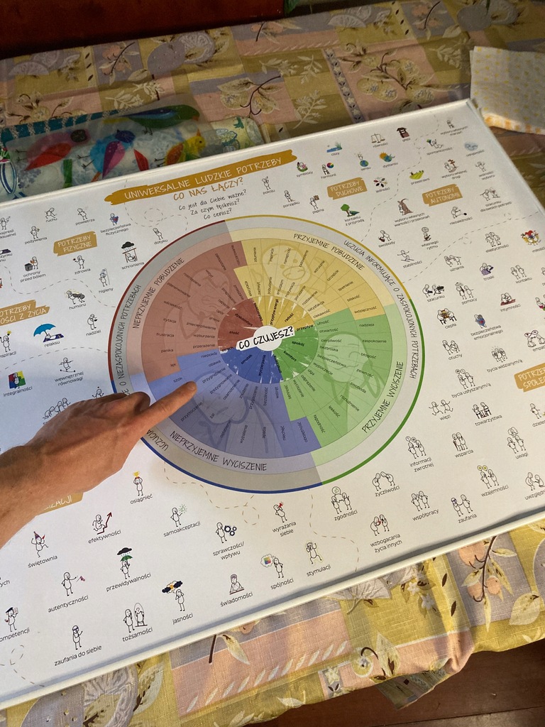 Plakat z kompasem uczuć i uniwersalnymi potrzebami to doskonałe narzędzie i wystrój pomieszczenia w jednym. Powieś go w widocznym miejscu i codziennie zauważaj swoje uczucia i nasze wspólne potrzeby.