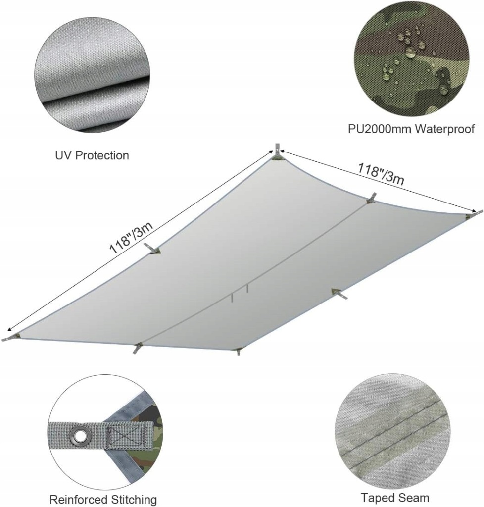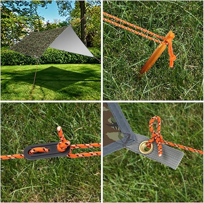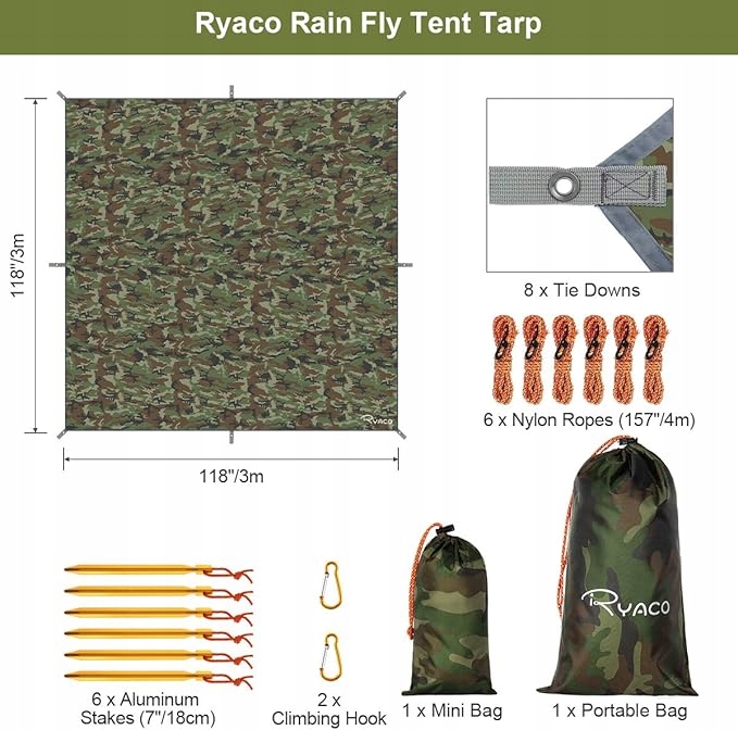 RYACO Plandeka kempingowa 3 m x 3 m – idealna na biwak, pod hamak, jako daszek przeciwsłoneczny, podkład pod namiot lub koc piknikowy.