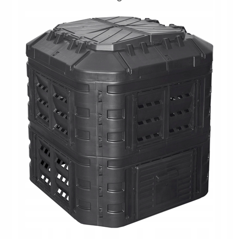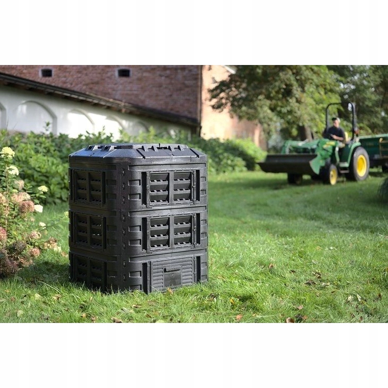 Plastikowy kompostownik o pojemności 600 l wykonany z bardzo wytrzymałego polipropylenu Konstrukcja zapewnia cyrkulację powietrza i przyspiesza proces rozkładu Produkt posiada pokrywę i boczne drzwiczki ułatwiające wyjmowanie kompostu Kompostownik jest odporny na warunki atmosferyczne, promieniowanie UV i może być przechowywany na zewnątrz w każdych warunkach pogodowych od -30°C do 45°C Montaż jest bardzo prosty i nie wymaga użycia narzędzi dzięki systemowi CLICK Wykonany z materiału pochodzącego z recyklingu Zalety kompostownika: system nawadniania kropelkowego Otwór na kłódkę Stałe zatrzaski boczne Podlewanie i napowietrzanie Stałe zawiasy pokrywy Wygodny uchwyt Duże drzwi przesuwne z wygodnymi uchwytami.