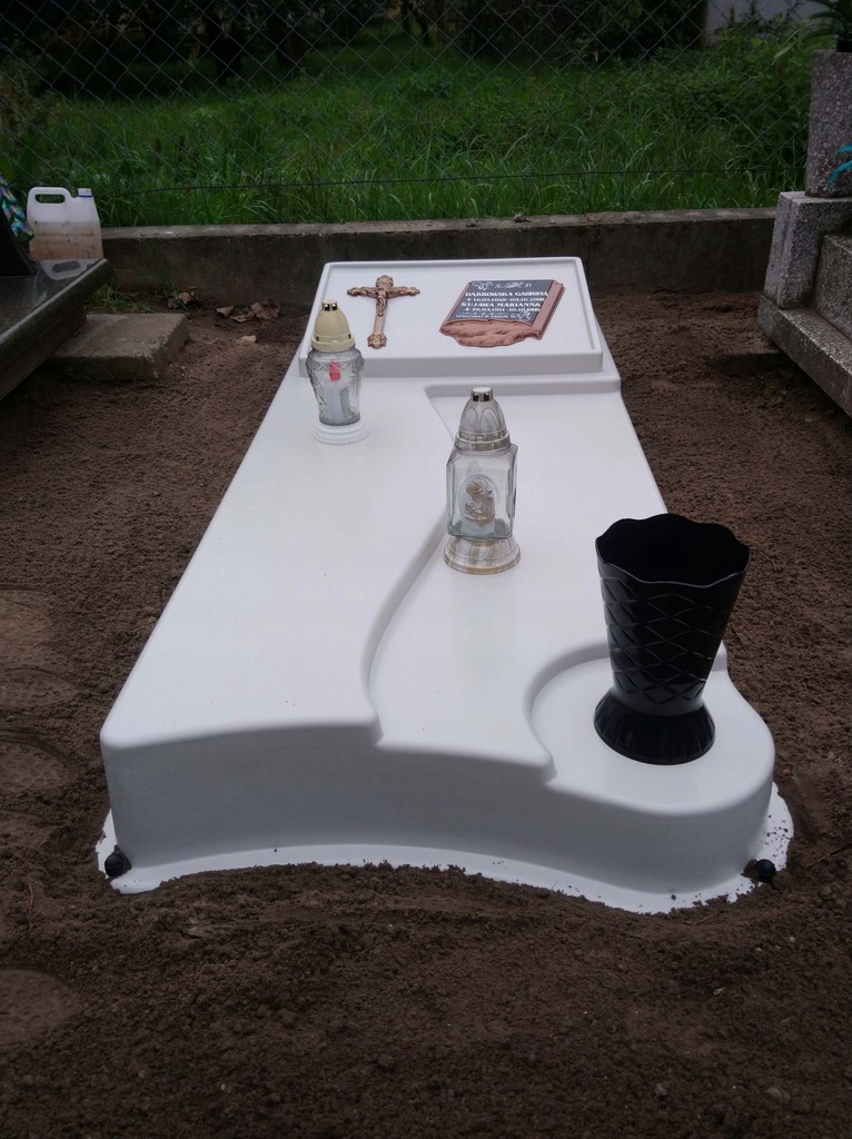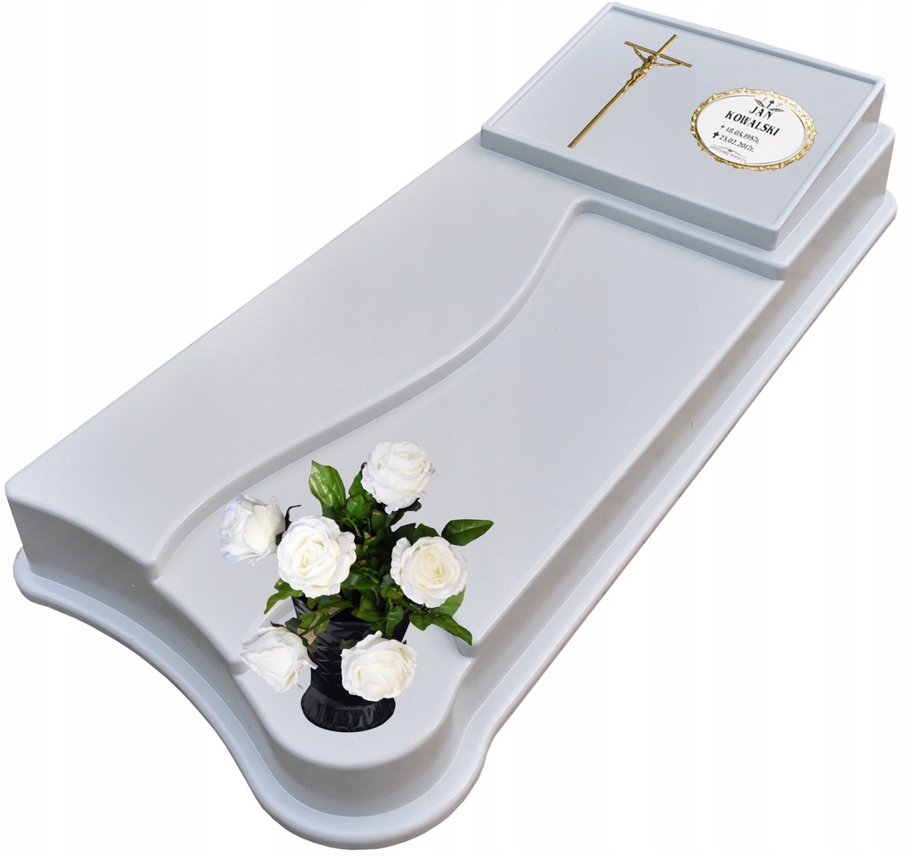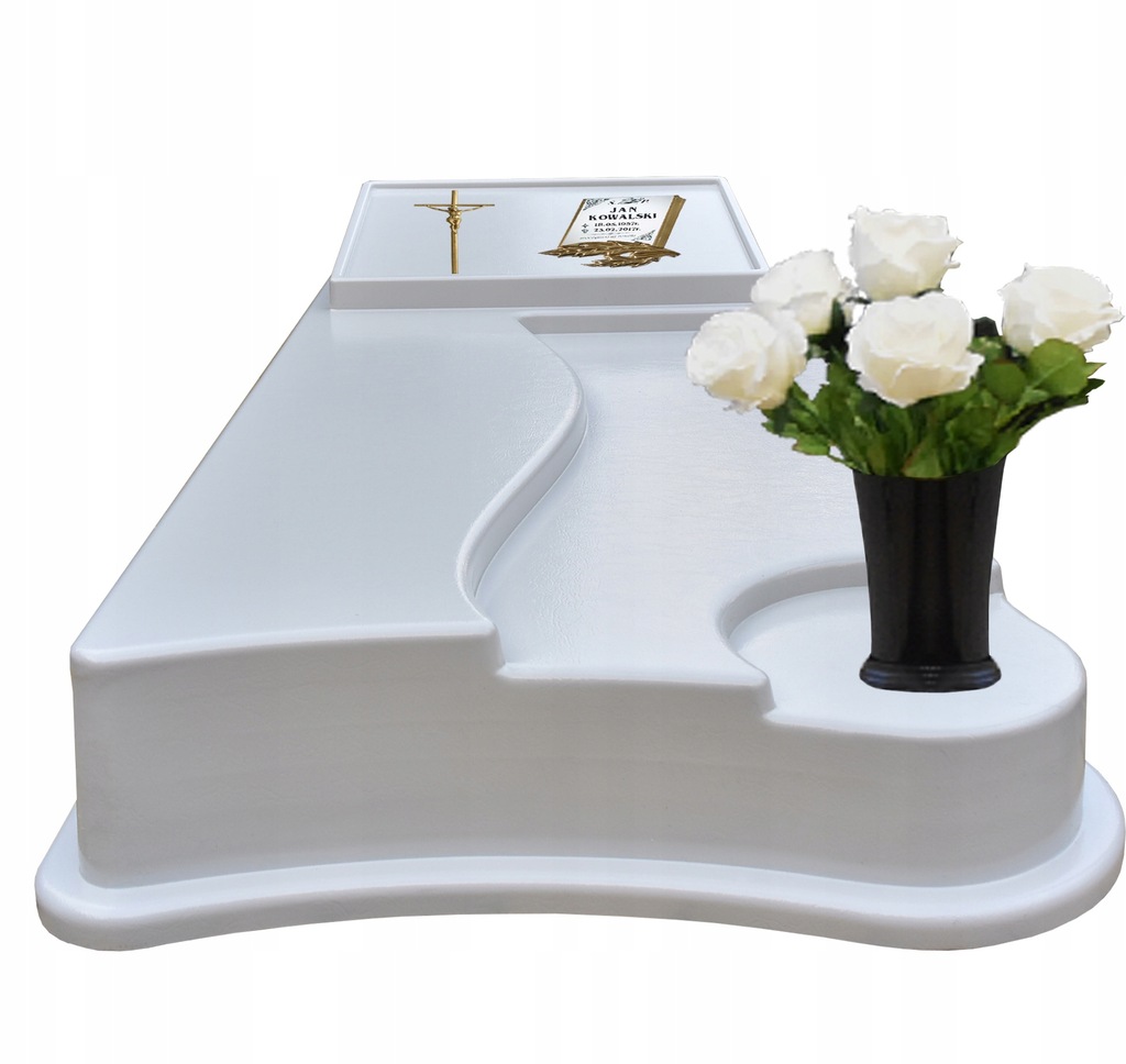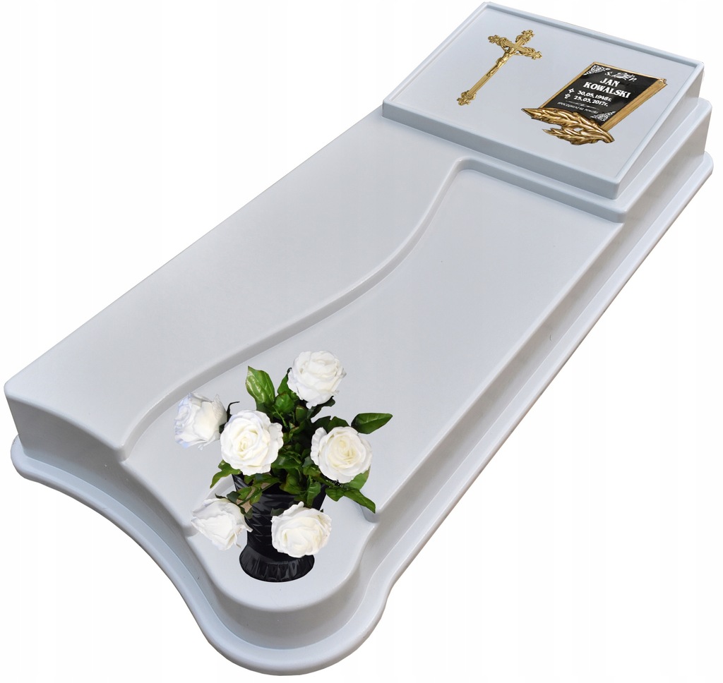 Pomnik cmentarny z tworzywa sztucznego pełni funkcję nagrobka z kamienia. Jest to idealna alternatywa dla tradycyjnego pomnika z kamienia. Tworzywo z którego wykonany jest produkt charakteryzuje się wysoką odpornością na warunki atmosferyczne, promienie UV, niskie temperatury, uszkodzenia mechaniczne.