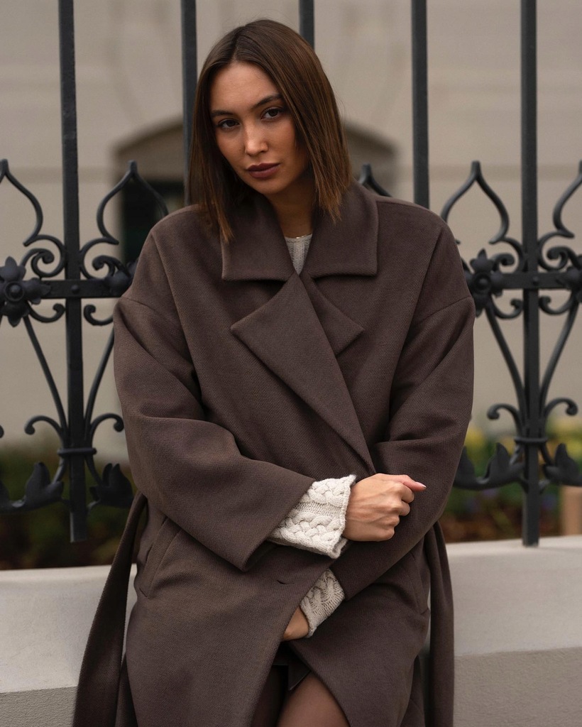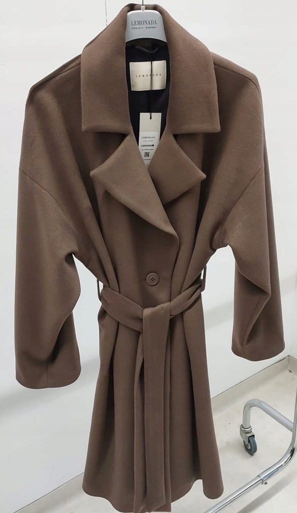 Płaszcz polskiej marki Lemonada. Kolor sezonu - czekoladowy, super krój i świetnej jakości materiał. Płaszcz posiada podszewkę, wszyte kieszenie i wiązanie w pasie. Rozmiar uniwersalny. Skład materiału: 70% bawełna, 28% poliester, 2% elastan.