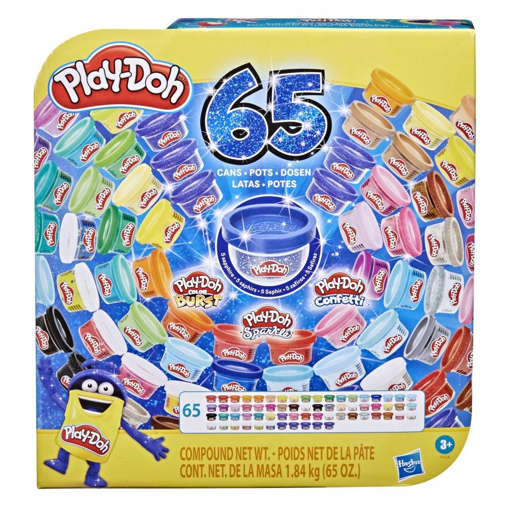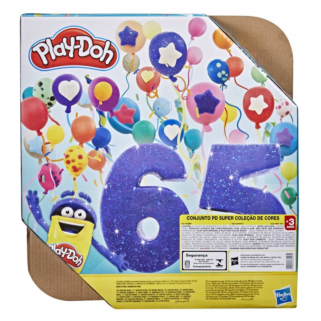 Hip, hip, hurra z okazji ponad 65 lat niesamowitej kreatywności! Świętuj z nami moc kolorów i nieokiełznanej wyobraźni dzięki temu zestawowi 65 tub Play-Doh! Znajdziesz w nim klasyczne kolory, a także konfetti, brokatowe, metaliczne, naśladujące faktury terenu oraz lśniącą, szafirową ciastolinę!