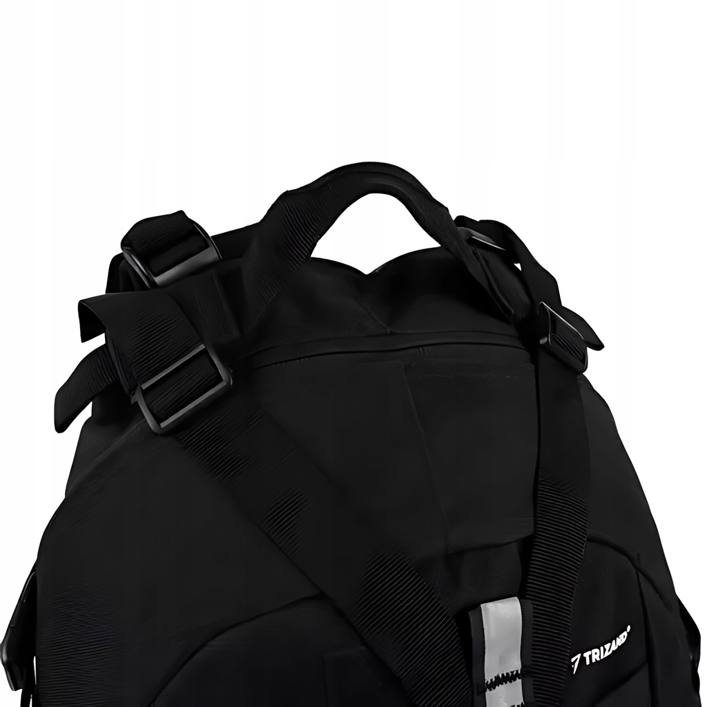 - POJEMNY + DODATKOWA WODOODPORNA OSŁONA W ZESTAWIE – plecak składa się z 1 dużej komory. Posiada ona zamek, co znacznie ułatwia zarówno pakowanie jak i wyjmowanie rzeczy. Wewnątrz komory znajduje się mniejsza, płaska kieszeń na rzep oraz 4 kieszenie zewnętrzne. 2 z przodu na zamek i 2 po bokach. Dodatkowo plecak został wyposażony w osłonę zabezpieczającą plecak przed opadami deszczu.