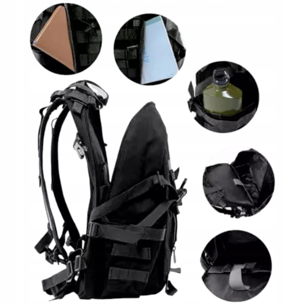 - SPECYFIKACJA - kolor: czarny; materiał: Oxford 900D/MESH 3D; wodoodporność osłony zabezpieczającej plecak: IPX1; pojemność: 25l; wymiary: 50x30x22cm; waga: 0,854kg; waga: 0,857kg.