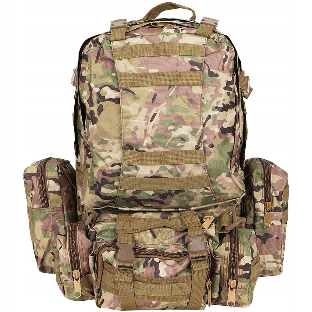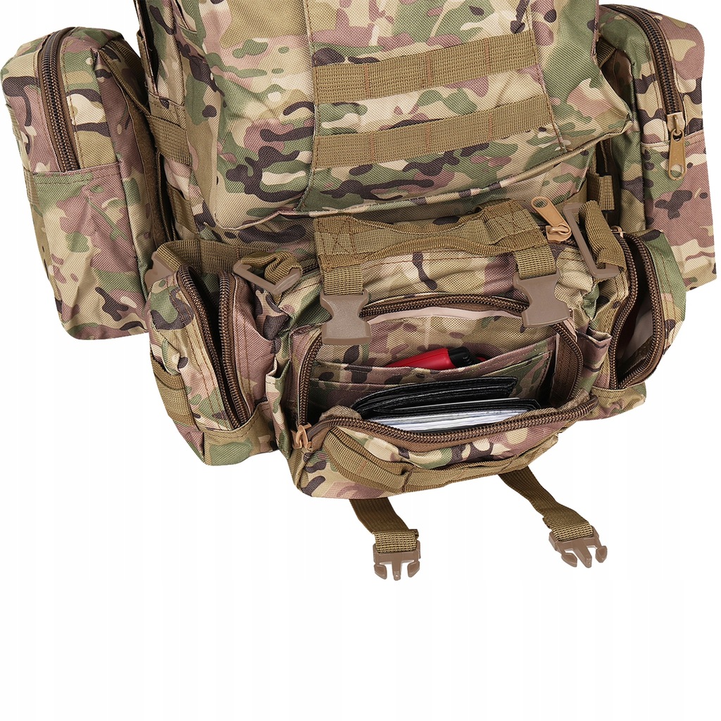 Plecak militarno-survivalowy o łącznej pojemności 48,5l jest to model umożliwiający idealne dopasowanie dla każdego! Doskonale sprawdzi się podczas wypraw w góry, ale nie tylko, plecak znajduje zastosowanie również do codziennego użytku, np. do szkoły. Wykonany został z wytrzymałego, wodoodpornego materiału, odpornego na rozdarcia i przecieranie. Plecak posiada rączkę, która umożliwia wygodne przenoszenie.