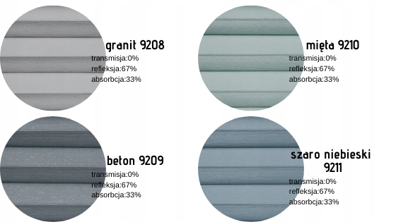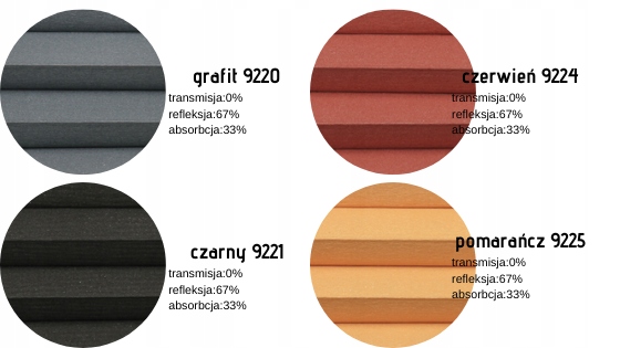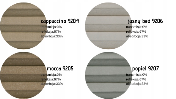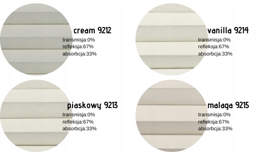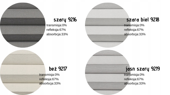 - materiał od strony szyby w kolorze białym, wewnątrz tkaniny znajduje się warstwa aluminium