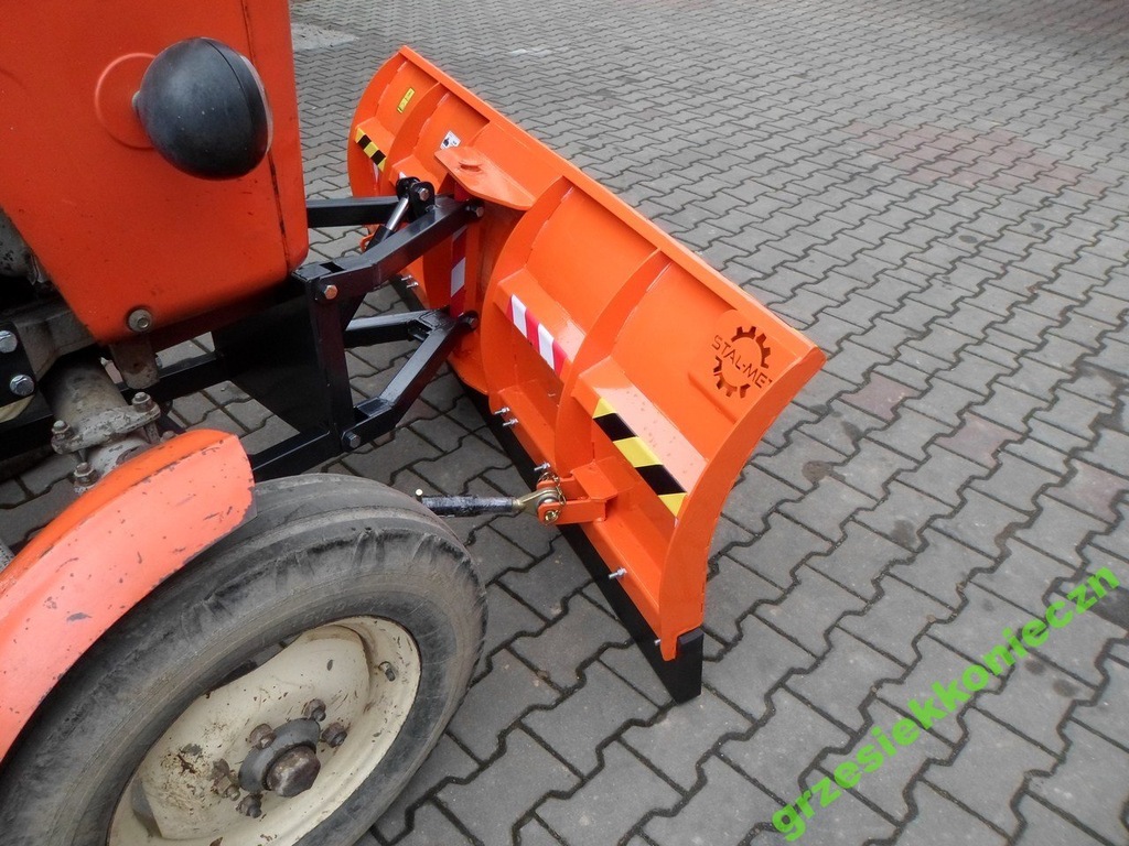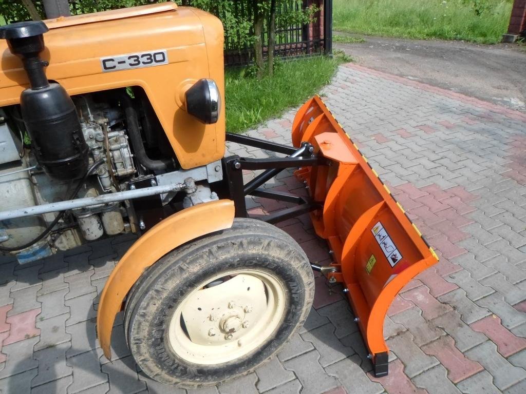 - Pług posiada wahanie dzięki czemu kopiuje teren,chroni przed uszkodzeniem gumy jak i pługa.