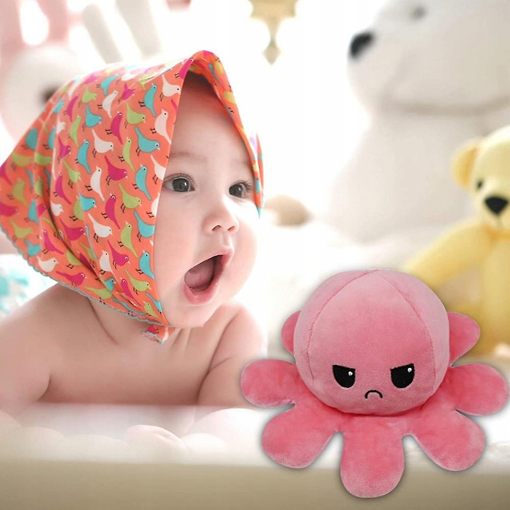 毛绒章鱼可逆可爱毛绒情感情绪玩具儿童礼物(粉红色到深粉红色)
