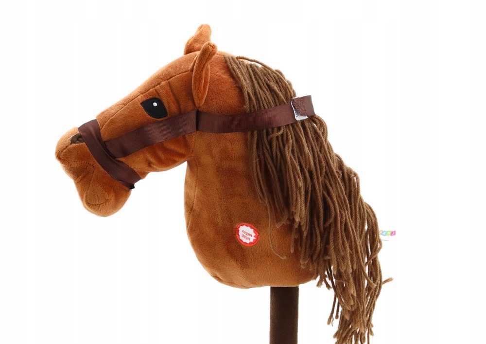 Pluszowa Głowa Konia Na Kiju Hobby Horse Koń Długowłosy Brązowy Dźwięki