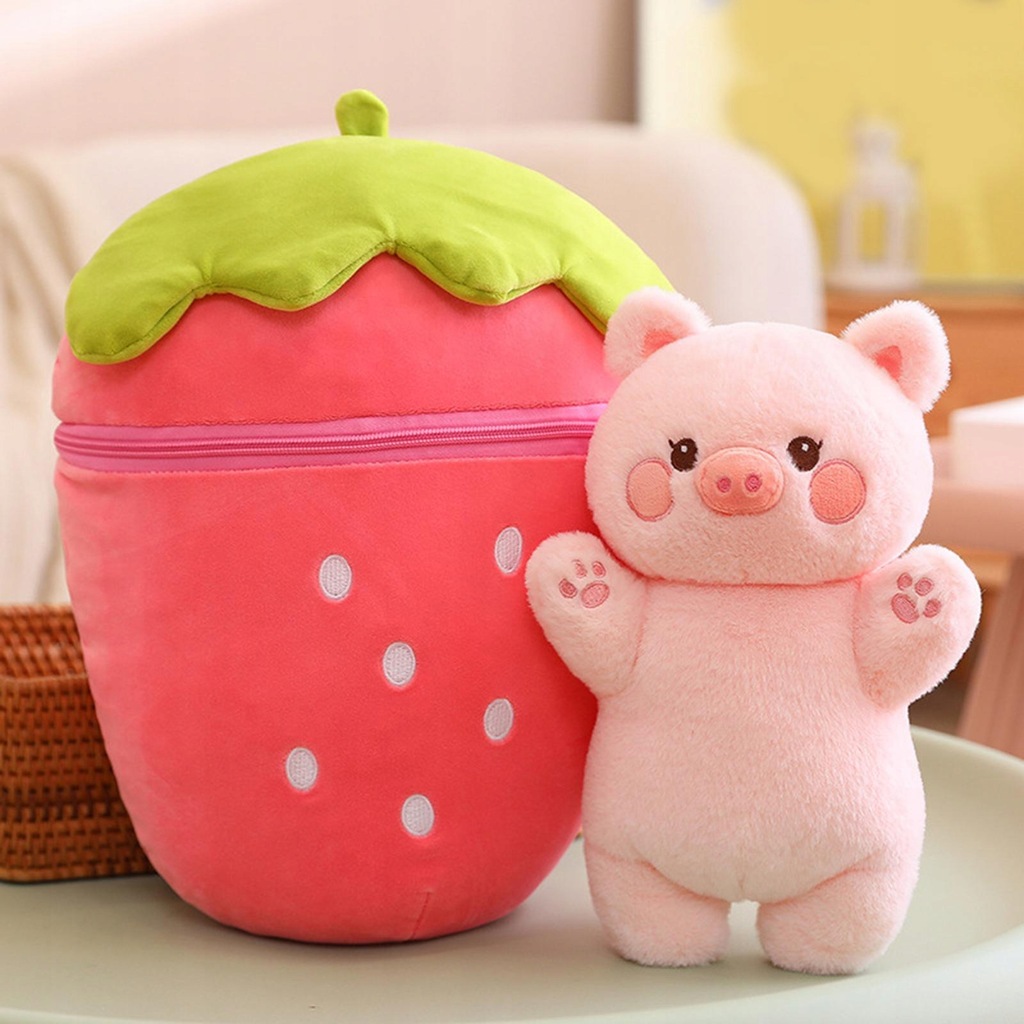 Poduszki pluszowe truskawkowe Pluszowe wypchane zwierzę na urodziny Wakacje Chłopcy Dziewczęta 40 cm Świnia