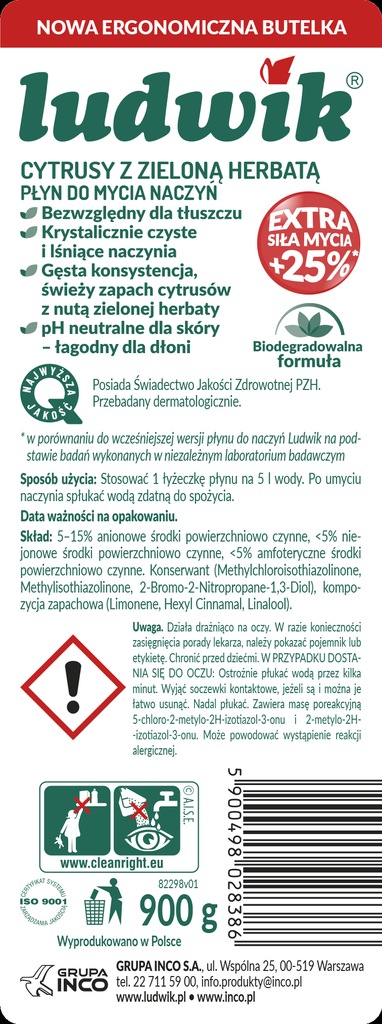 Płyn do naczyń Ludwik cytrusy z ziel.herbatą 0,9kg