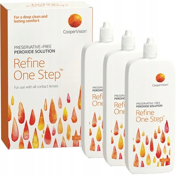 Refine One Step to jednoetapowy płyn oksydacyjny od firmy CooperVision. Roztwór nadtlenku jest jednym z najbardziej skutecznych płynów czyszczących soczewki kontaktowe. Dzięki nadtlenkowi wodoru soczewki są optymalnie dezynfekowane, doskonale czyszczone oraz bardzo dobrze nawilżone.