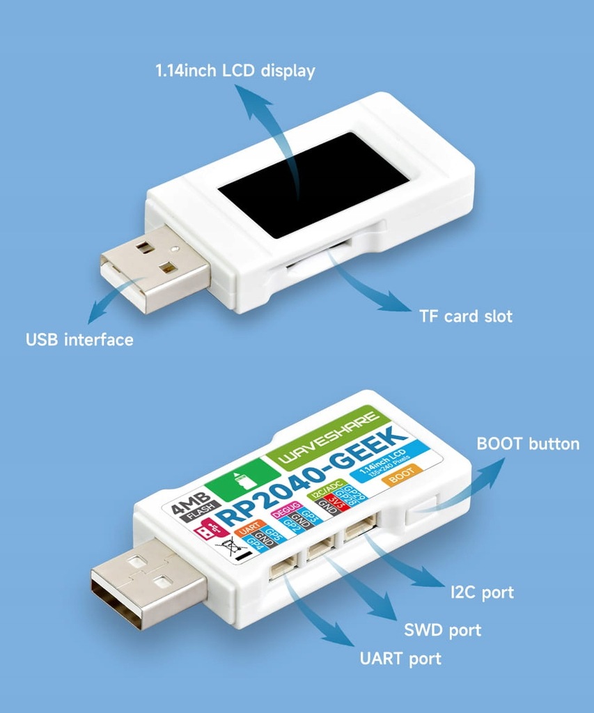 Płyta rozwojowa RP2040-GEEK USB-A z 1.14cal wyświetlaczem 65K kolorów